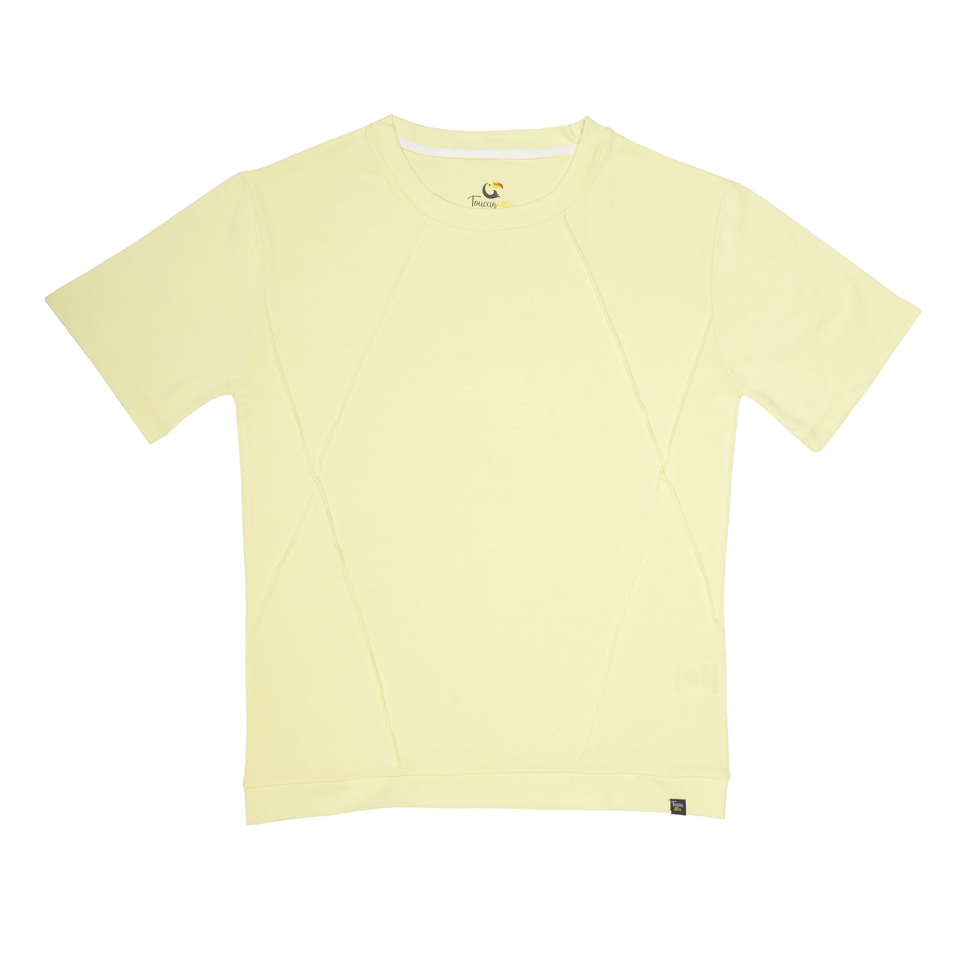 Upgrade your casual style with this sleek line pale yellow short-sleeve T-shirt. Designed with subtle stitched lines for a modern touch, this solid-colored tee offers a clean and contemporary look. Made from soft, breathable fabric, it ensures all-day comfort with a relaxed fit and classic round neckline. Perfect for everyday wear, layering, or pairing with your favorite bottoms for a stylish yet effortless outfit!