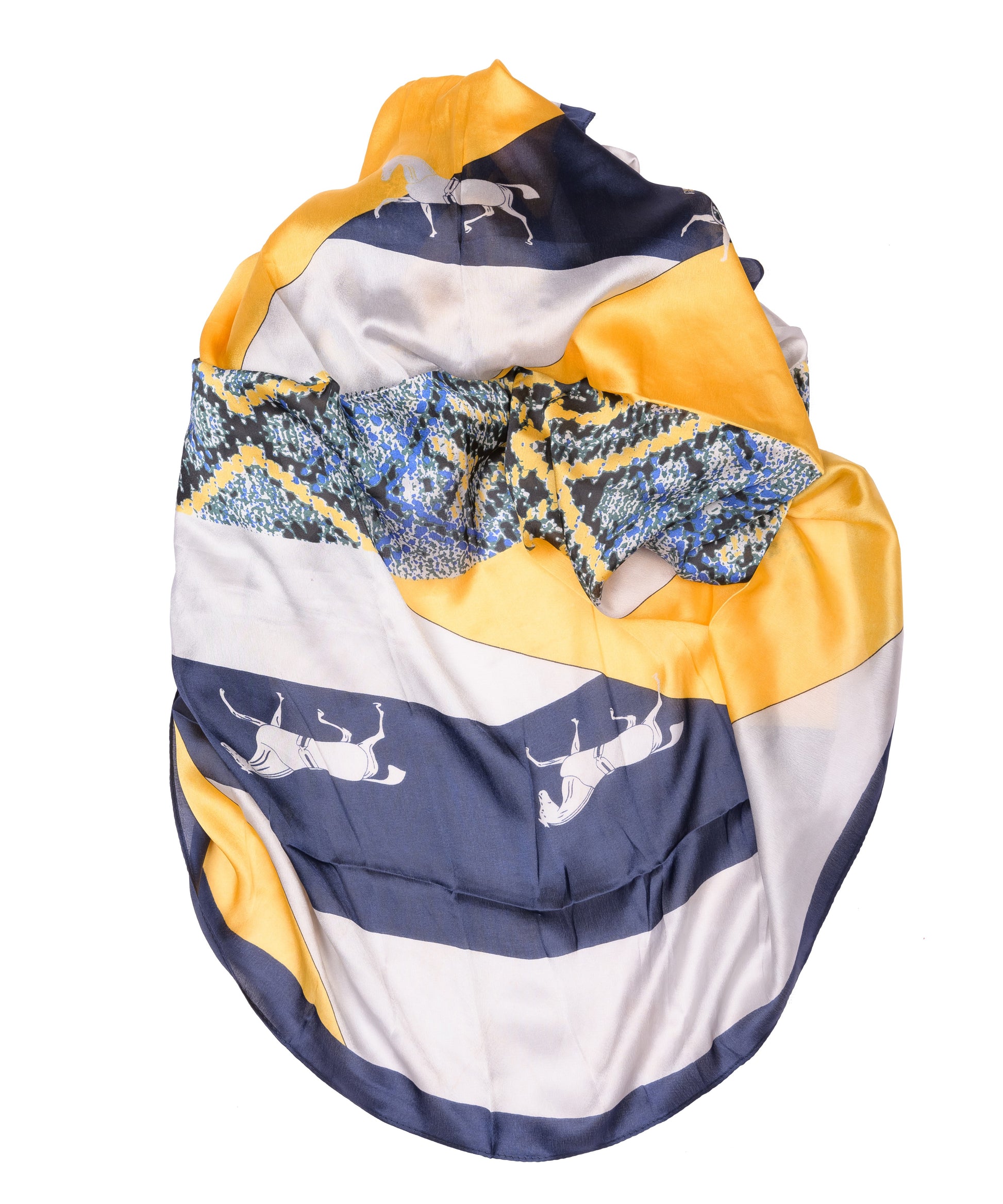 Striking silk scarf featuring an intricate medallion pattern in rich teal against a deep charcoal background. This sophisticated accessory showcases ornate scrollwork, floral motifs, and decorative elements with a distinctly architectural inspiration. The premium silk construction offers exceptional sheen and fluid drape, while the bold color contrast creates a statement piece that adds instant refinement to both casual and formal outfits.