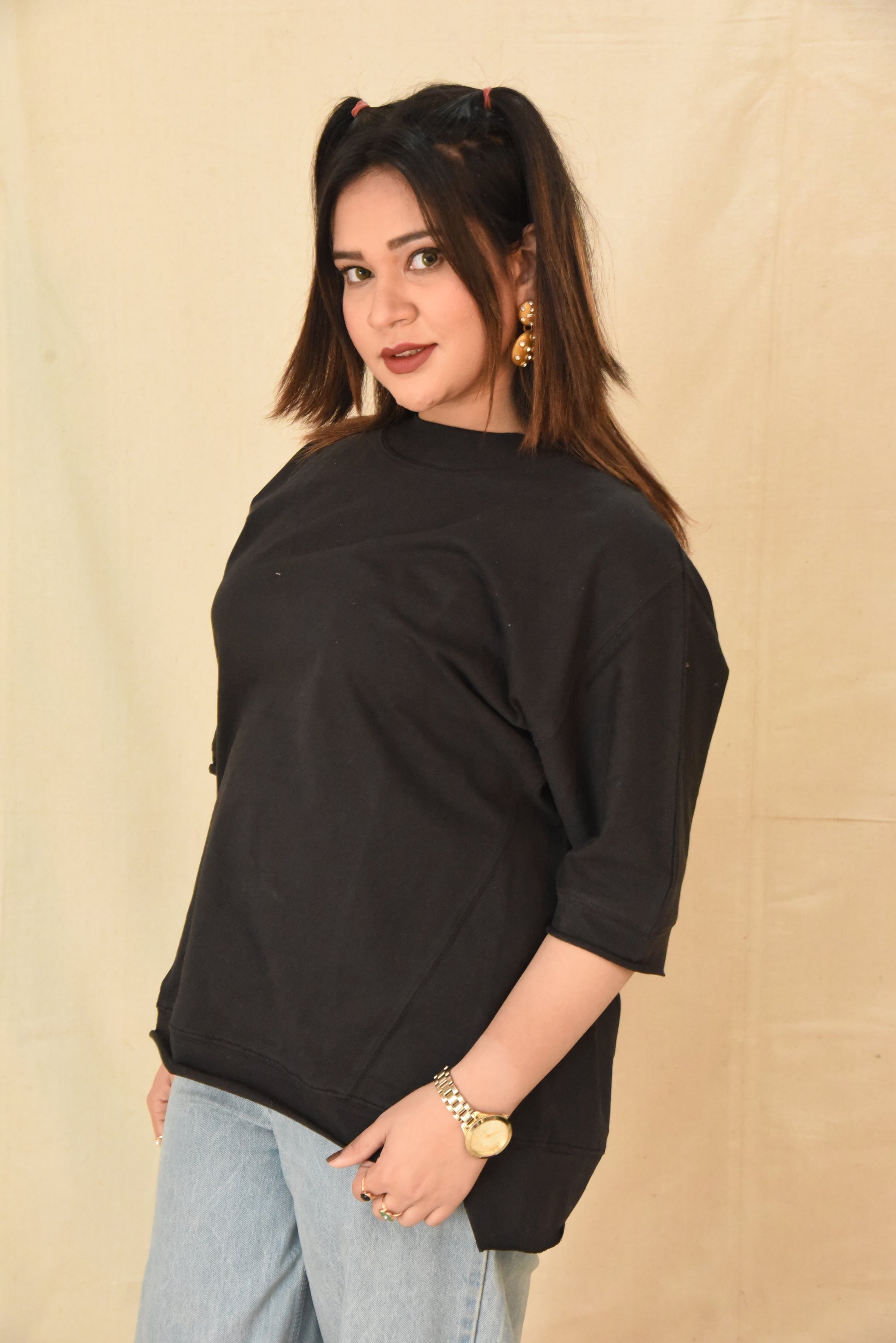 Black Oversized Mock Neck Top