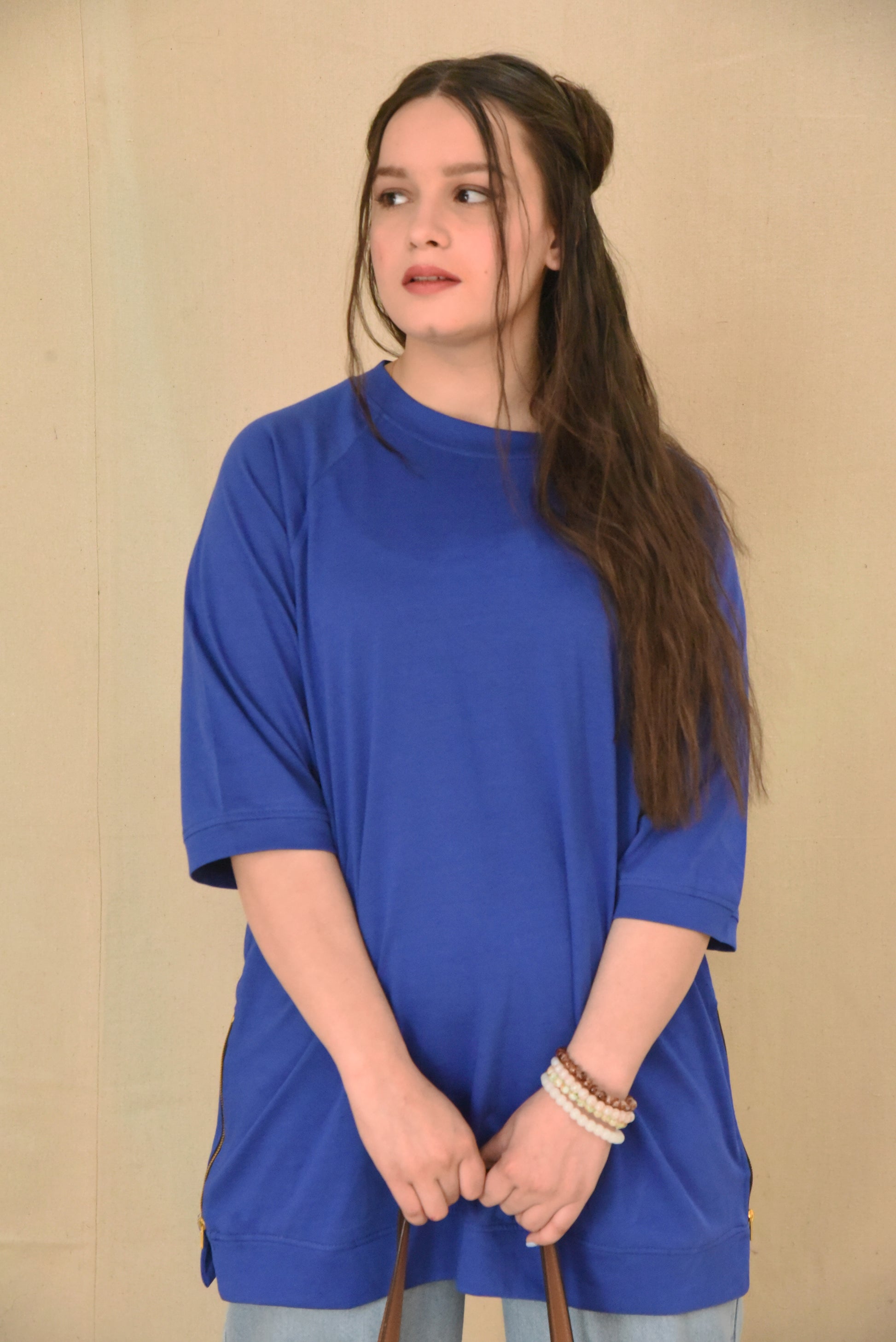 Elevate your casual wardrobe with this women's royal blue raglan t-shirt. Featuring a relaxed fit and breathable fabric, this tee offers all-day comfort with a stylish edge.